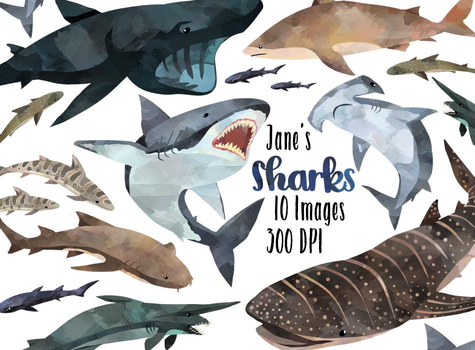 Watercolor Sharks Clipart Shark Species Download Instant Etsy New Zealand